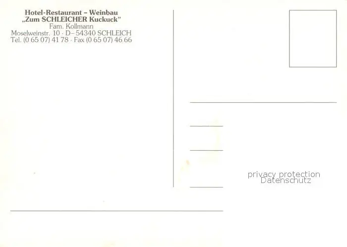 Schleich Hotel Restaurant Zum Schleicher Kuckuck Terrasse Weinbau Schleich postalisch nicht gelaufen nach 1965 Erhaltung siehe scans [FriedD77] Frierer