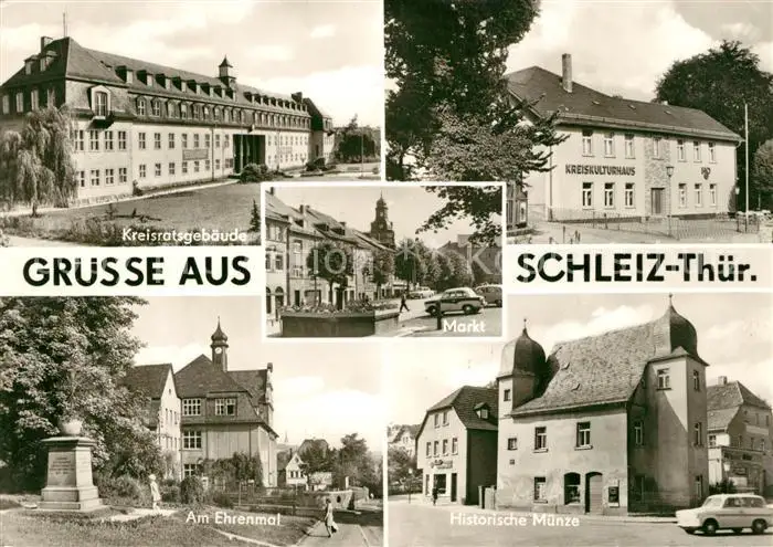 AK / Ansichtskarte Schleiz Kreisratsgebaeude Markt Ehrenmal Historische Muenze Schleiz