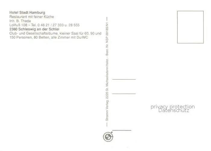 Schleswig_Schlei Hotel Stadt Hamburg Schleswig_Schlei postalisch nicht gelaufen nach 1965 Erhaltung siehe scans [WerneD78] WernPID7