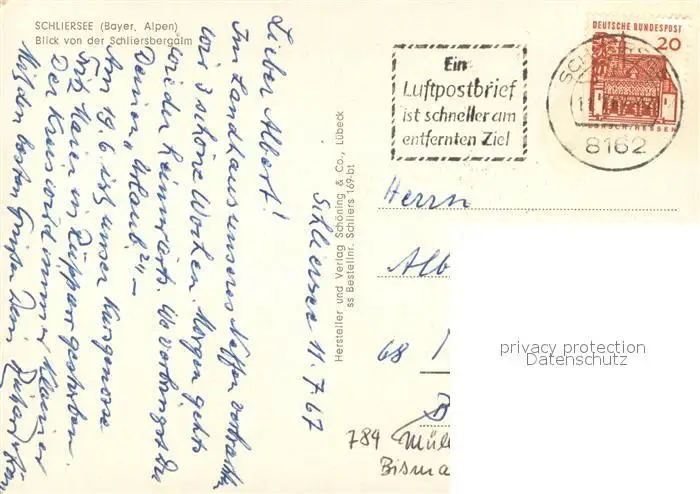 Schliersee Blick von Schliersbergbahn Schliersee postalisch gelaufen 1967 Erhaltung siehe scans [LiesaD40] LiesID40