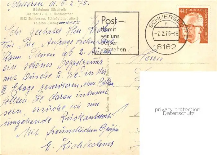 Schliersee Gaestehaus Elisabeth Schliersee postalisch gelaufen 1975 Erhaltung siehe scans [KathaD81] Kathoren