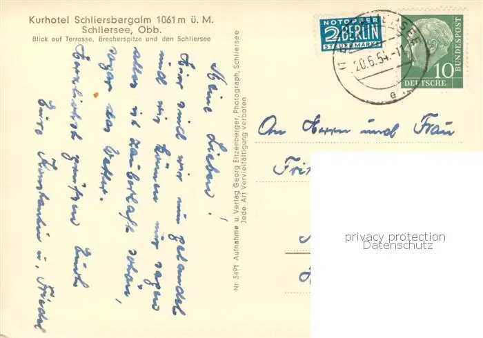 Schliersee Kurhotel Schliersbergalm Terrasse Brecherspitze Schliersee postalisch gelaufen 1954 Erhaltung siehe scans [FriedD77] Frierer