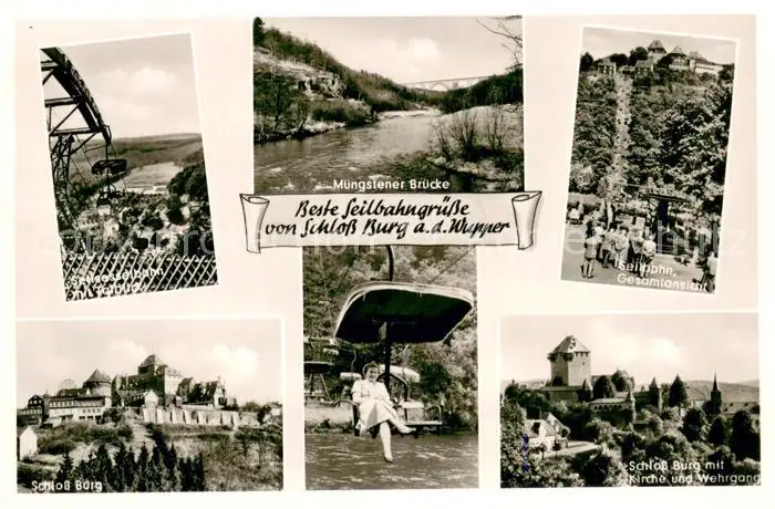Schloss_Burg_Wupper Muengstener Bruecke Sesselbahn Seilbahn Gesamtansicht Schloss_Burg_Wupper postalisch nicht gelaufen 1921-1965 Erhaltung siehe scans [LiesaD40] LiesID40