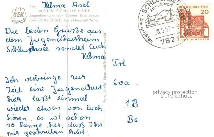 Schluchsee Haus Schluchsee im Winter Jugendkurheim der BEK Schluchsee postalisch gelaufen 1967 Erhaltung siehe scans [FriedD77] Frierer