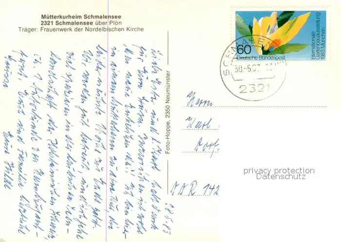 Schmalensee Muetterkurheim Schmalensee Aufenthaltsraum Partie am See Schmalensee postalisch gelaufen 1983 Erhaltung siehe scans [FriedD77] Frierer