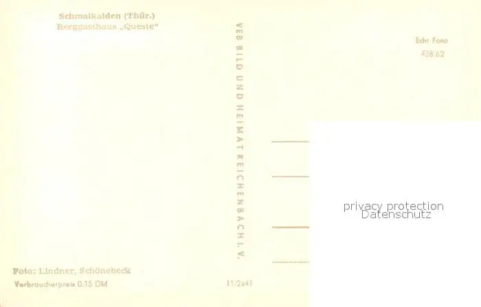 Schmalkalden Berggasthaus Queste Schmalkalden postalisch nicht gelaufen 1962 Erhaltung siehe scans [FriedD77] Frierer