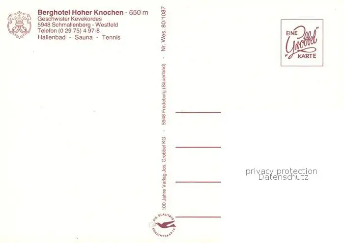 Schmallenberg Kategorie Alte Ansichtskarten Postkarten bx45520 Schmallenberg Berghotel Hoher Knochen Schmallenberg postalisch nicht gelaufen nach 1965 Erhaltung siehe scans [LiesaD40]