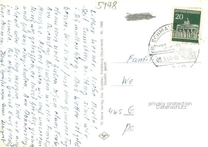 Schmallenberg Ortsansicht mit Kirche Hallenschwimmbad Schmallenberg postalisch gelaufen 1968 Erhaltung siehe scans [FriedD77] Frierer