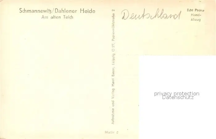 Schmannewitz Am alten Teich Dahlener Heide Birke Handabzug Schmannewitz postalisch nicht gelaufen 1956 Erhaltung siehe scans [FriedD77] Frierer