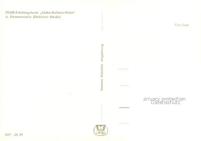 Schmannewitz FDGB Erholungsheim Kaethe Kollwitz Huette Schmannewitz postalisch nicht gelaufen 1968 Erhaltung siehe scans [FriedD77] Frierer