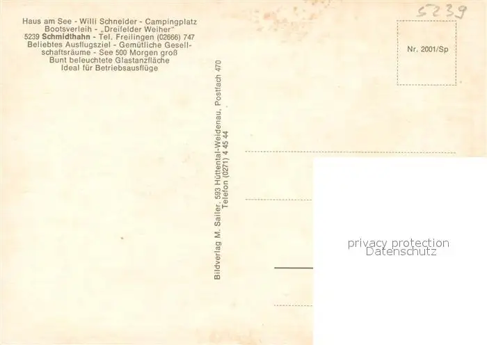 Schmidthahn Campingplatz Weiher in der Westerwaelder Seenplatte Schmidthahn postalisch nicht gelaufen nach 1965 Erhaltung siehe scans [FriedD77] Frierer