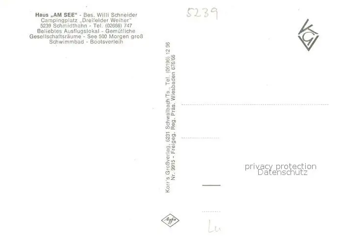 Schmidthahn Fliegeraufnahme mit Haus am See Campingplatz Dreifelder Weiher Schmidthahn postalisch nicht gelaufen 1921-1965 Erhaltung siehe scans [WerneD78] WernPID7