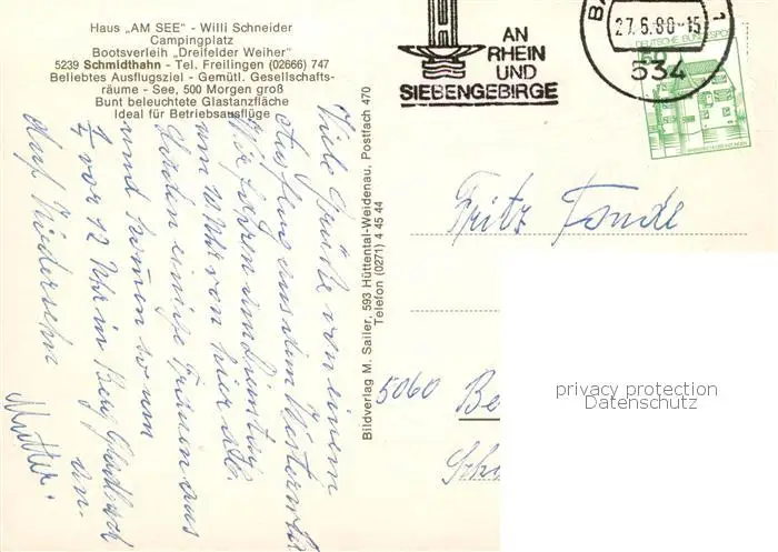 Schmidthahn Haus am See Schmidthahn postalisch gelaufen 1980 Erhaltung siehe scans [FriedD77] Frierer