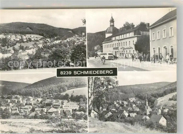 Schmiedeberg _Dippoldiswalde Teilansichten Hauptstrasse Gaststaette Landschaftspanorama Schmiedeberg postalisch gelaufen 1921-1965 Erhaltung siehe scans [FriedD77] Frierer