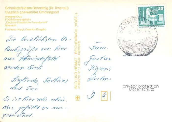 Schmiedefeld_Rennsteig Waldbad Crux FDGB Erholungsheim Deutsch Sowjetische Freundschaft Schmiedefeld_Rennsteig postalisch gelaufen nach 1965 Erhaltung siehe scans [FriedD77] Frierer