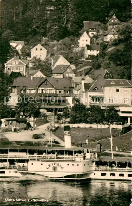 AK / Ansichtskarte Schmilka Teilansicht Raddampfer Leipzig Schmilka