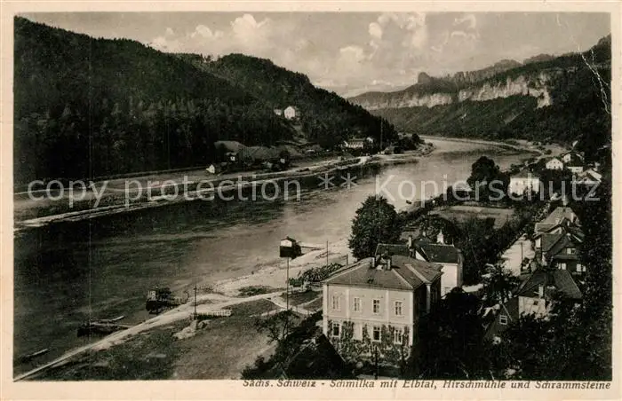 AK / Ansichtskarte Schmilka mit Elbtal Hirschmuehle und Schrammsteine Schmilka