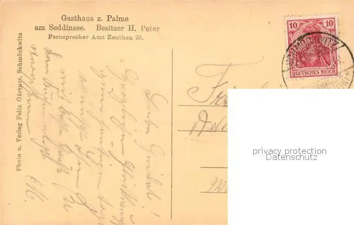Schmoeckwitz Gasthaus zur Palme Faehre Schmoeckwitz postalisch gelaufen 1919 Erhaltung siehe scans [WerneD78] WernPID7