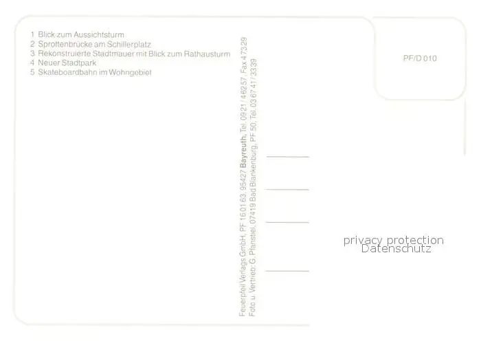 Schmoelln_Thueringen Aussichtsturm Sprottenbruecke Schillerplatz Stadtmauer Rathausturm Stadtpark Skateboardbahn Wohngebiet Wappen Schmoelln Thueringen postalisch nicht gelaufen nach 1965 Erhaltung siehe scans [FriedD77] Frierer