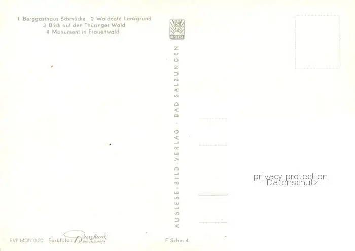 Schmuecke Berggasthaus Waldcafe Lenkgrund Panorama Thueringer Wald Monument in Frauenwald Schmuecke postalisch nicht gelaufen nach 1965 Erhaltung siehe scans [FriedD77] Frierer