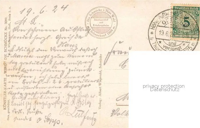 Schmuecke_Gehlberg_Thueringen Die Schmuecke Kuenstlerkarte postalisch gelaufen 1924 Erhaltung siehe scans [FriedD77] Frierer