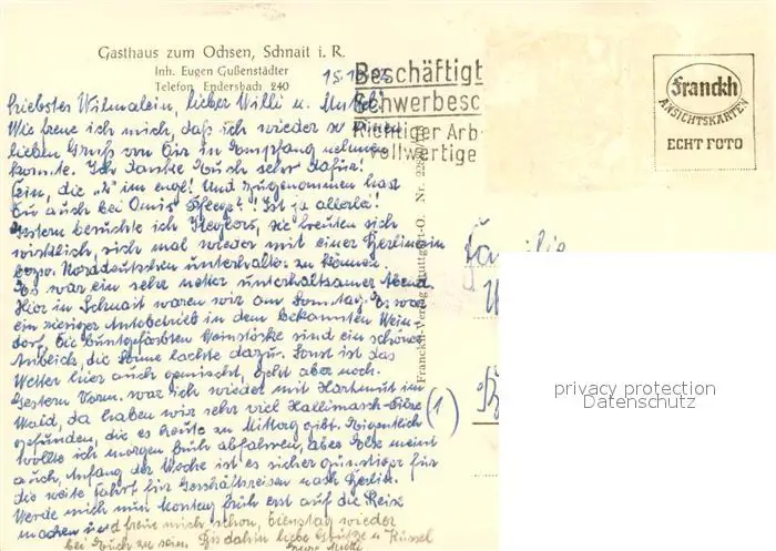 Schnait_Weinstadt_Remstal Panorama Schnait_Weinstadt_Remstal postalisch gelaufen 1921-1965 Erhaltung siehe scans [WerneD78] WernPID7
