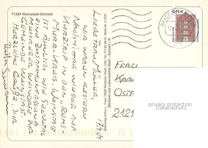 Schnait_Weinstadt_Remstal Schnaiter Kirbe Kirche Silchermuseum Gemeindezentrum Schnait_Weinstadt_Remstal postalisch gelaufen 2004 Erhaltung siehe scans [KathaD81] Kathoren