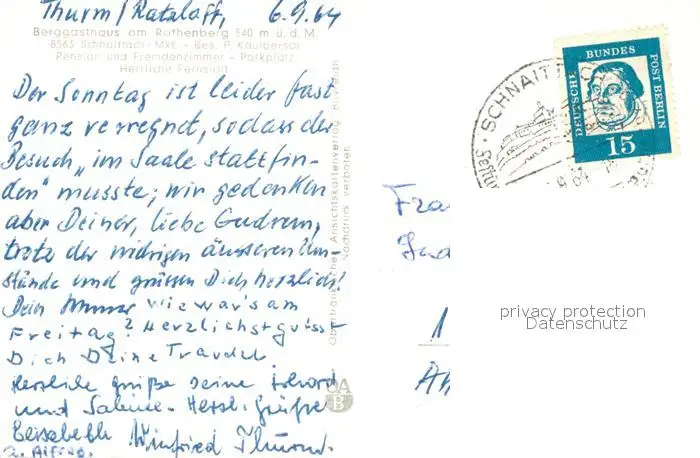 Schnaittach Berggasthaus Rothenberg Panorama Festung Rothenberg Eingang Schnaittach postalisch gelaufen 1964 Erhaltung siehe scans [WerneD78] WernPID7
