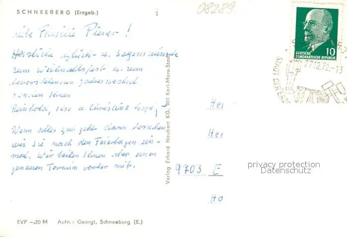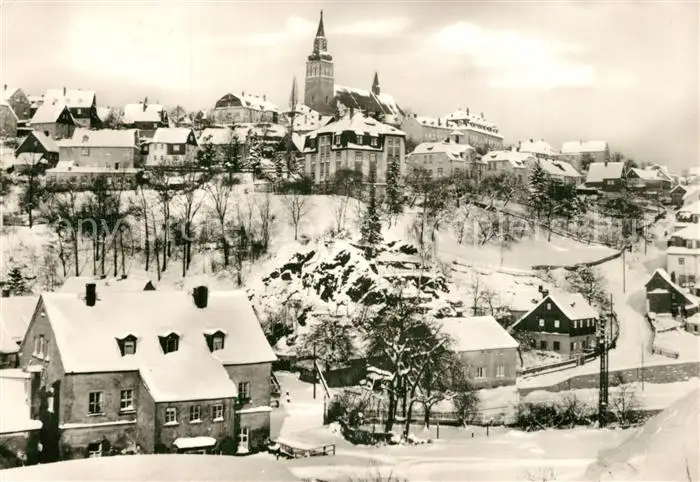 Schneeberg_Erzgebirge Ansicht mit Kirche Winterimpressionen Schneeberg Erzgebirge postalisch gelaufen 1972 Erhaltung siehe scans [FriedD77] Frierer