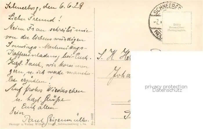 Schneeberg_Erzgebirge Ortsansicht mit Kirche Schneeberg Erzgebirge postalisch gelaufen 1929 Erhaltung siehe scans [FriedD77] Frierer