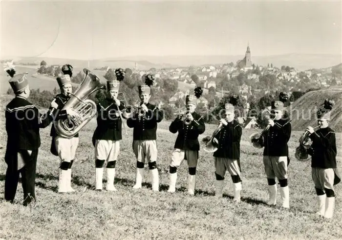 AK / Ansichtskarte Schneeberg_Erzgebirge Schneeberger Bergmusikanten in historischen Trachten Schneeberg Erzgebirge