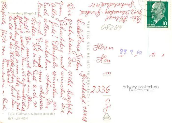 Schneeberg Erzgebirge Kategorie Alte Ansichtskarten Postkarten kq47489 Schneeberg_Erzgebirge Stadtbild mit Blick zur Kirche Schneeberg Erzgebirge postalisch gelaufen 1968 Erhaltung siehe scans [FriedD77]