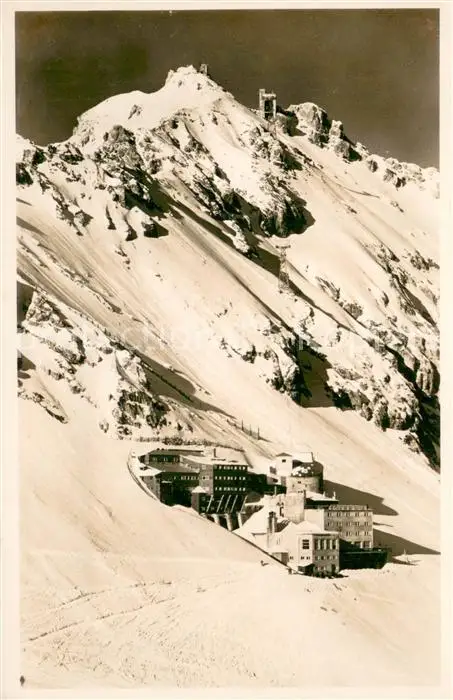 AK / Ansichtskarte Schneefernerhaus_2650m_Zugspitze mit Gipfelbahn und Gipfelstation