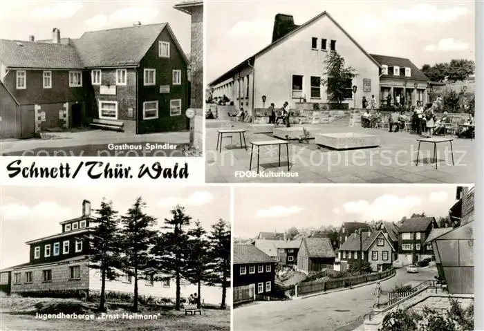Schnett_Masserberg_Thueringer_Wald Gasthaus Spindler FDGB Kulturhaus Jugendherberge Ernst Heilmann Strassenpartie postalisch nicht gelaufen nach 1965 Erhaltung siehe scans [WerneD78] WernPID7
