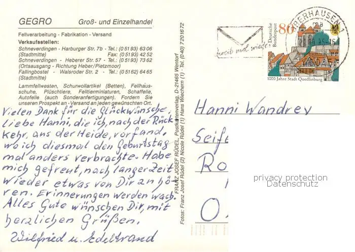Schneverdingen Gegro Gross und Einzelhandel im Fachwerkhaus Heidelandschaft Seepartie Schneverdingen postalisch gelaufen nach 1965 Erhaltung siehe scans [WerneD78] WernPID7