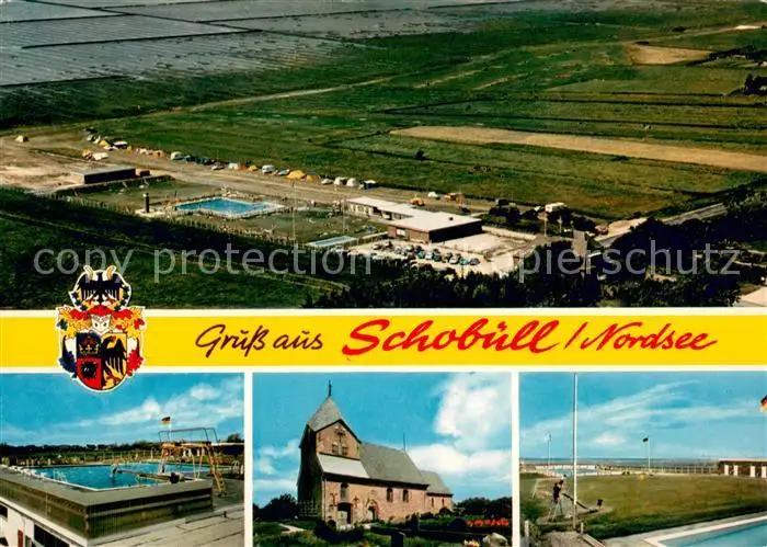 Schobuell_Husum Freibad Kirche Fliegeraufnahme postalisch nicht gelaufen nach 1965 Erhaltung siehe scans [FriedD77] Frierer