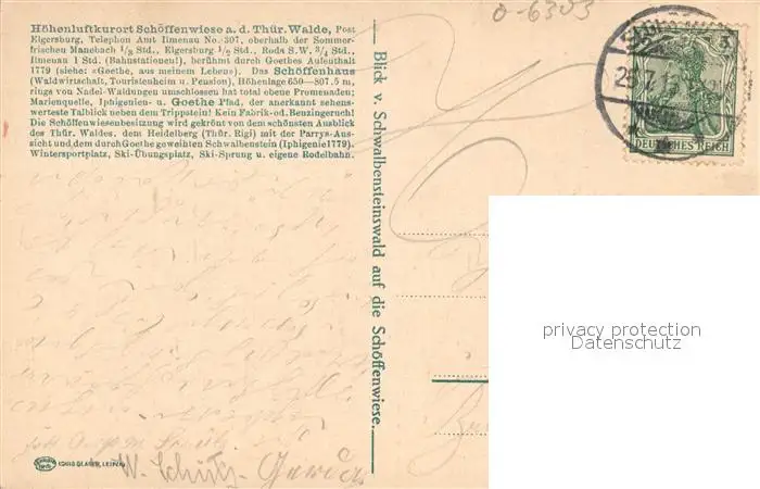 Schoeffenwiese Hoehenluftkurort Thueringer Wald Schoeffenwiese postalisch gelaufen 1913 Erhaltung siehe scans [FriedD77] Frierer
