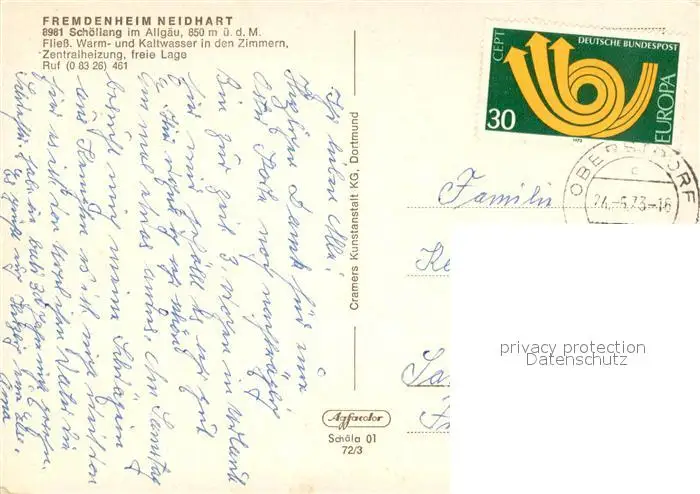 Schoellang Fremdenheim Neidhart Gastraeume Treppenaufgang Schoellang postalisch gelaufen 1973 Erhaltung siehe scans [WerneD78] WernPID7