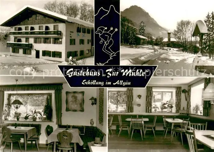 AK / Ansichtskarte Schoellang Gaestehaus Zur Muehle Gastraum Ortsmotiv im Winter Schoellang