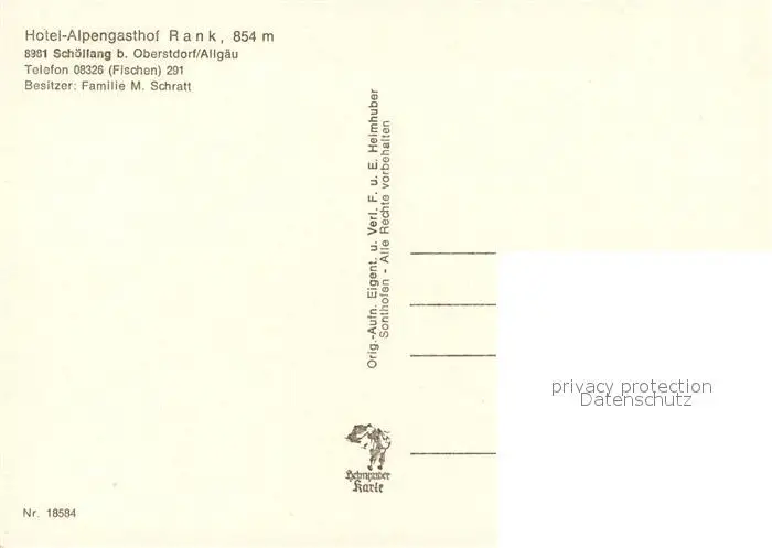 Schoellang Kategorie Alte Ansichtskarten Postkarten bx51111 Schoellang Hotel Alpengasthof Rank Kegelbahn Alpen Schoellang postalisch nicht gelaufen nach 1965 Erhaltung siehe scans [FriedD77]