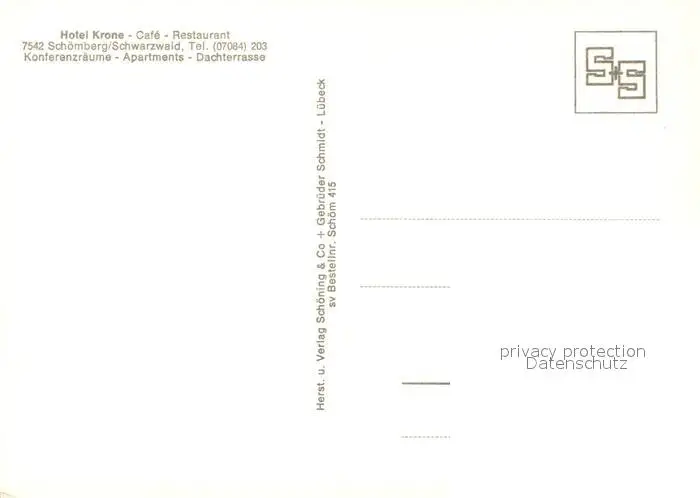 Schoemberg_Schwarzwald Hotel Krone Schoemberg Schwarzwald postalisch nicht gelaufen nach 1965 Erhaltung siehe scans [LiesaD40] LiesID40