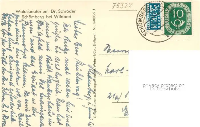Schoemberg_Schwarzwald Waldsanatorium Dr Schroeder Schoemberg Schwarzwald postalisch gelaufen 1921-1965 Erhaltung siehe scans [WerneD78] WernPID7