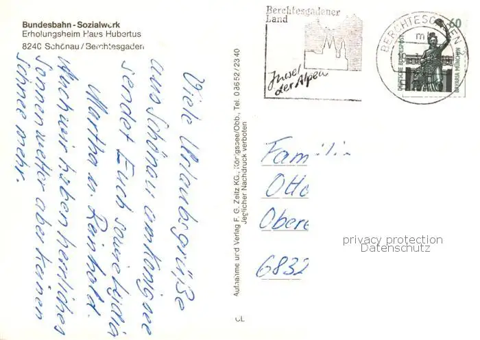 Schoenau_Berchtesgaden Haus Hubertus Schoenau Berchtesgaden postalisch gelaufen nach 1965 Erhaltung siehe scans [WerneD78] WernPID7