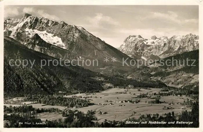 Schoenau_Berchtesgaden Landschaftspanorama mit Hochkalter und Reiteralpe Berchtesgadener Alpen Schoenau Berchtesgaden postalisch gelaufen 1936 Erhaltung siehe scans [FriedD77] Frierer