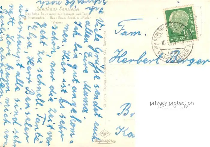 Schoenau_Brend Landhaus Sanssouci Restaurant im Krumbachtal Schwanenteich Schoenau Brend postalisch gelaufen 1956 Erhaltung siehe scans [FriedD77] Frierer