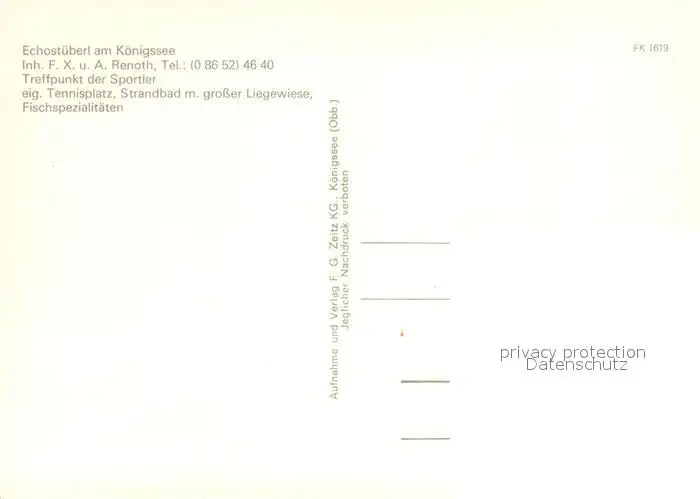 Schoenau_Koenigssee Echostueberl Restaurant Schoenau Koenigssee postalisch nicht gelaufen nach 1965 Erhaltung siehe scans [FriedD77] Frierer