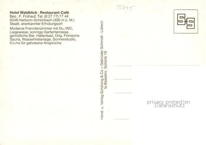 Schoenbach_Dillkreis Hotel Waldblick Restaurant Café Hallenbad Schoenbach Dillkreis postalisch nicht gelaufen nach 1965 Erhaltung siehe scans [FriedD77] Frierer