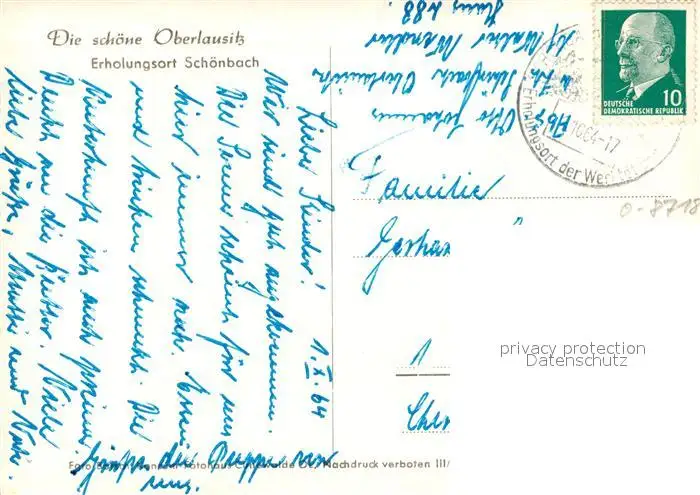 Schoenbach_Sachsen Panorama Schoenbach Sachsen postalisch gelaufen 1964 Erhaltung siehe scans [WerneD78] WernPID7
