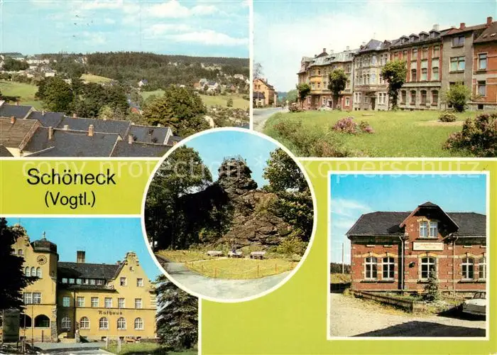 AK / Ansichtskarte Schoeneck_Vogtland Blick vom Alten Soell Thaelmann Breitscheid Platz Rathaus Alter Soell Jugendherberge Hertha Lindner Schoeneck_Vogtland