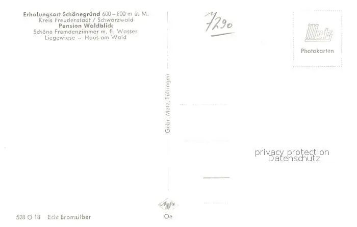 Schoenegruend Pension Waldblick Landschaftspanorama Schwarzwald Bromsilber Schoenegruend postalisch nicht gelaufen 1921-1965 Erhaltung siehe scans [FriedD77] Frierer